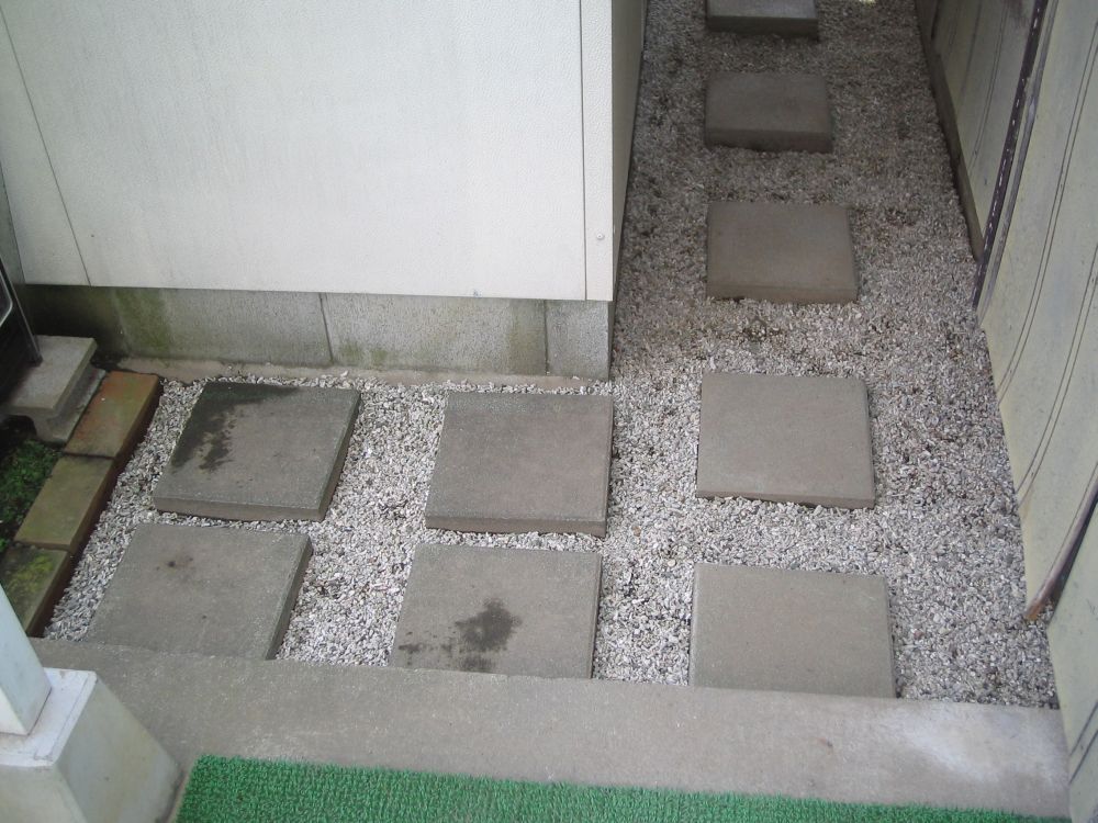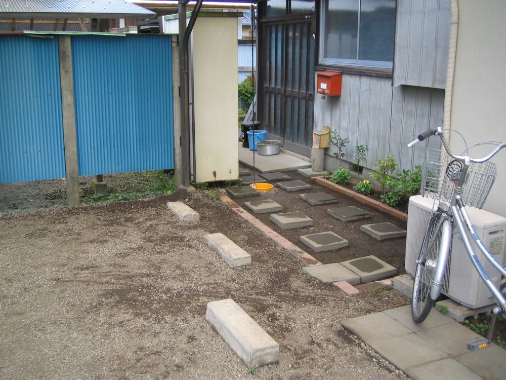 | 19〜21日 | 駐輪場所の敷石や飛び石を全て一端撤去。草の根などを取り除いて再度、レベルを取って敷き直し。玉 |