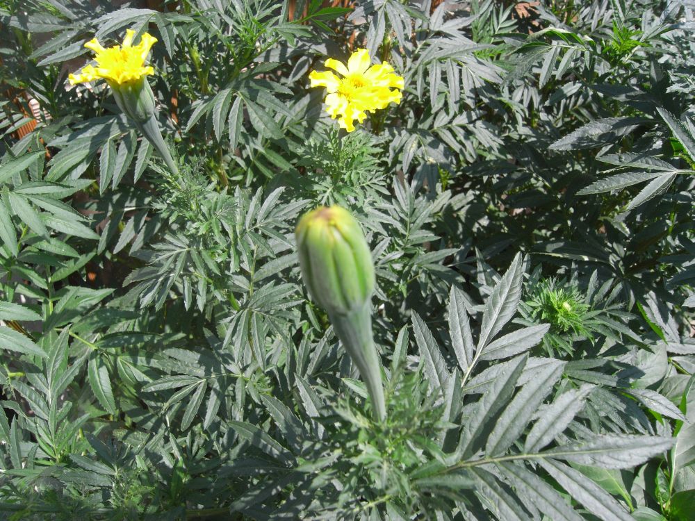 「アフリカン・マリーゴールド」(クリックすると拡大画面になります)種蒔き5月24日〜発芽5月28日〜開花8月29日